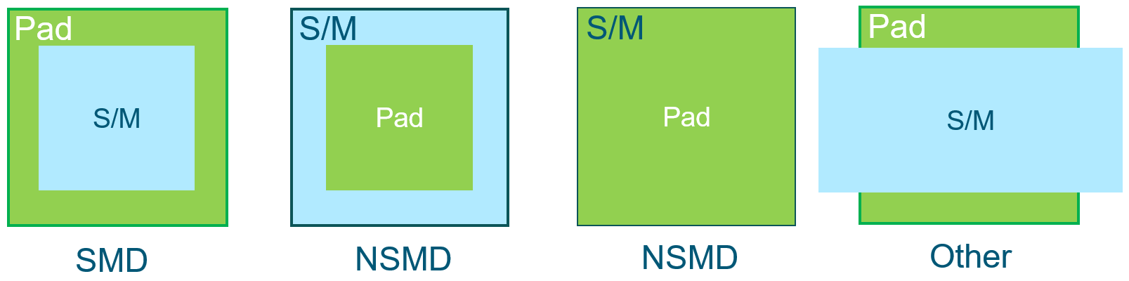 - If the Pad is entirely within the Solder Mask area (including cases where they are the same size), it is considered an NSMD Pad.