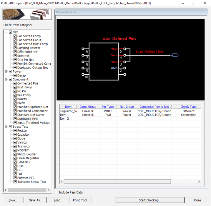 - Different Power Net Connection Check: Check whether the output pins of the device are connected to the same power net.