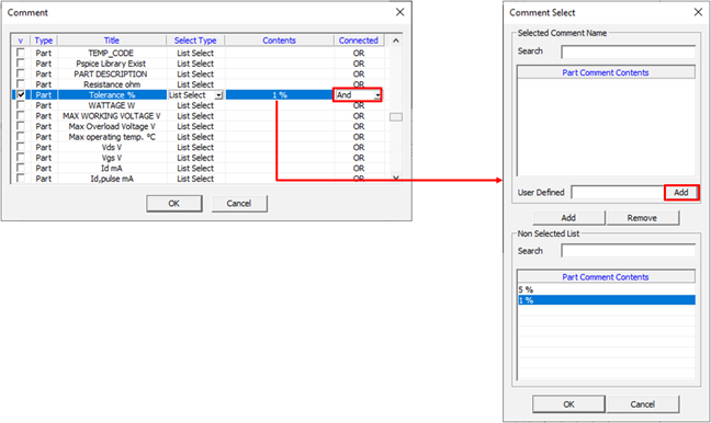 we want resister has 1% tolerance, to choose properties, 1% and RESISTOR,
