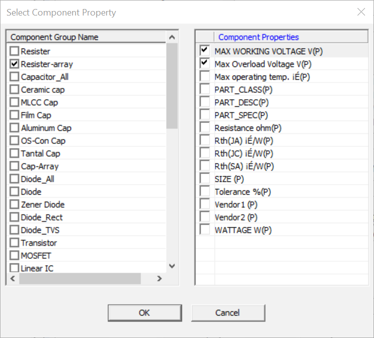 In the Select Component Property dialog, select the