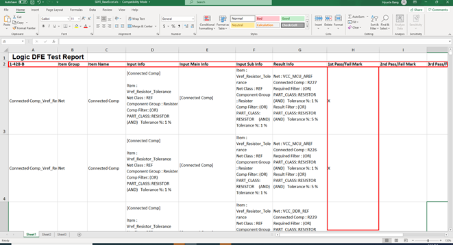 - 1st Pass/Fail Mark column shows the test result status. (Pass/Fail)