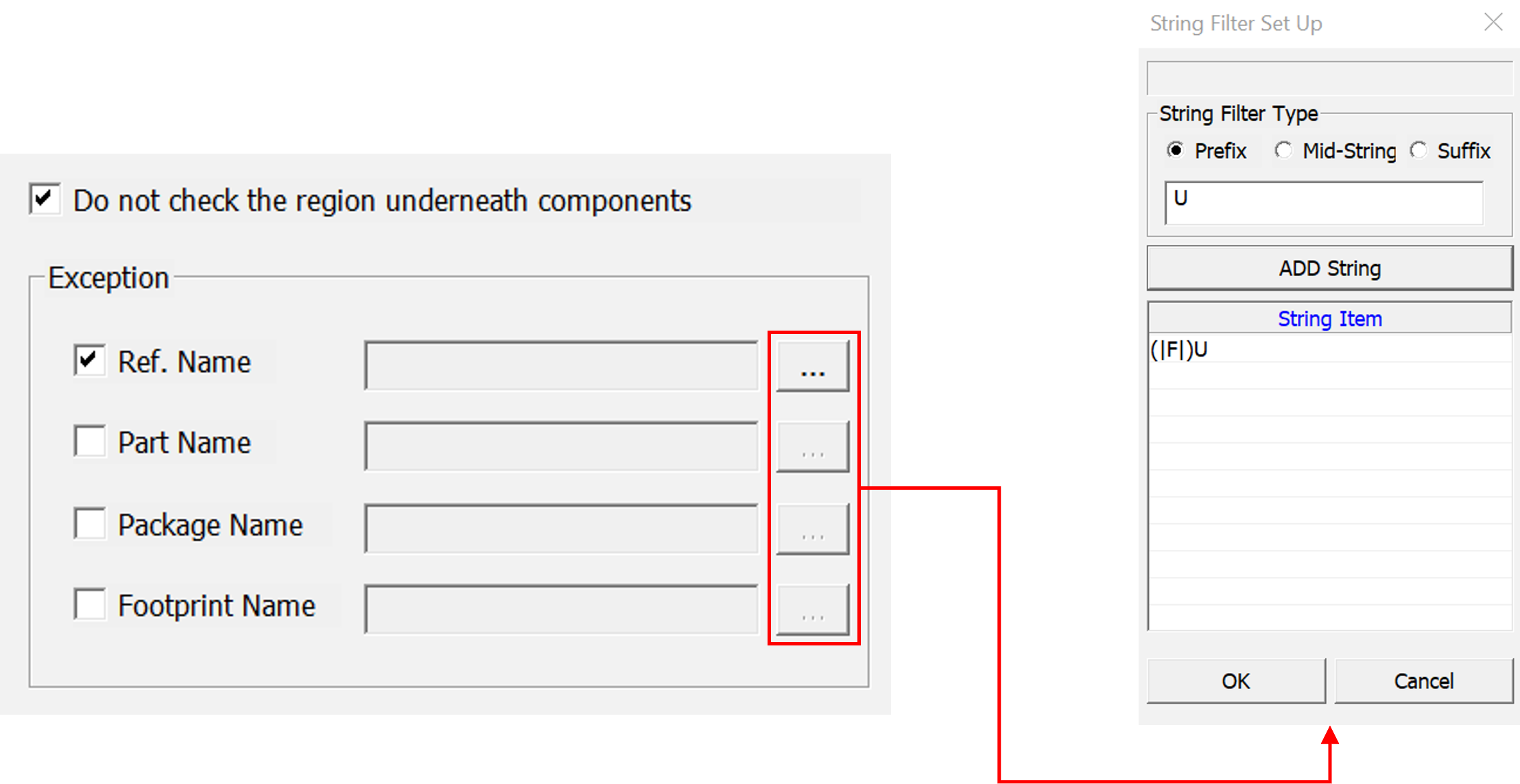 The String Filter Set Up also provides the following option: