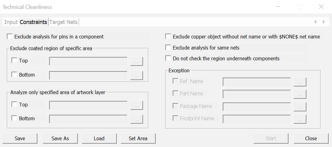 - Exclude analysis for same sets - This option excludes the objects with the same nets from analysis.