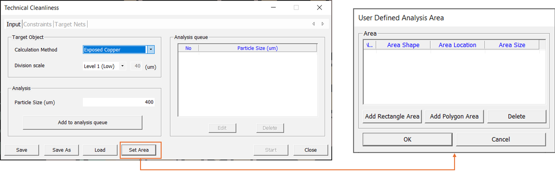 Select the user-defined analysis area in the design for the user to allocate a specific region or section for analysis.