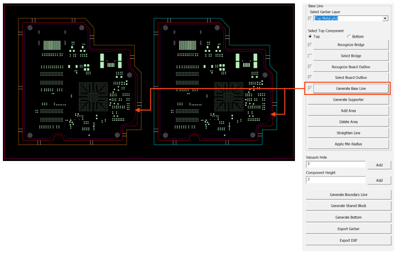 Block JIG Generator provides to quickly generate design drawing for manufacturing JIG using PCB design data and panel PCB Gerber of array board.