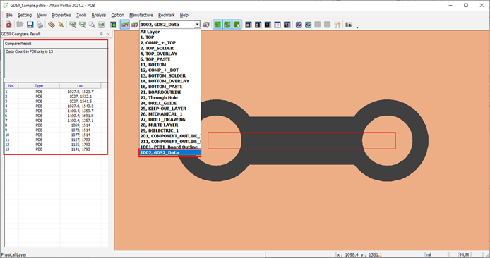 Modeler as shown in Figure 7.Figure 6. When the comparison function is performed, a layer for displaying GDSII