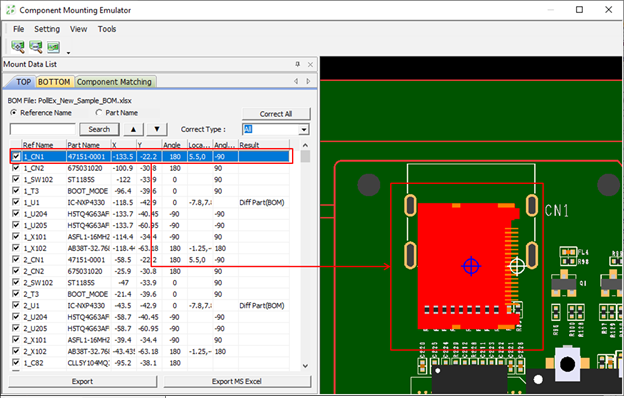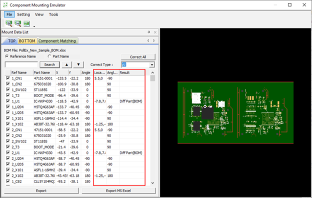 The mounting information of all parts with different mounting