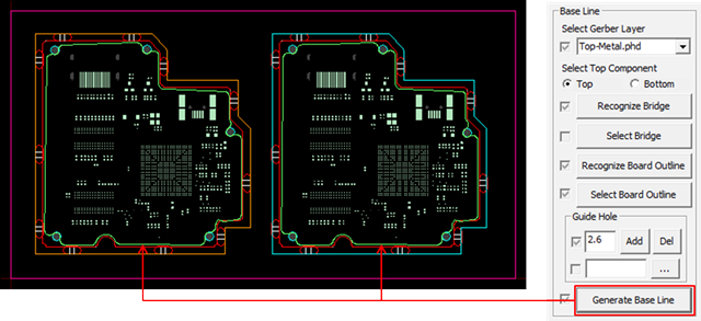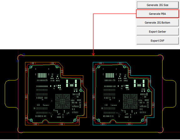 A processing line for panel PCB mounting on the router JIG which is generated and is displayed in yellow.