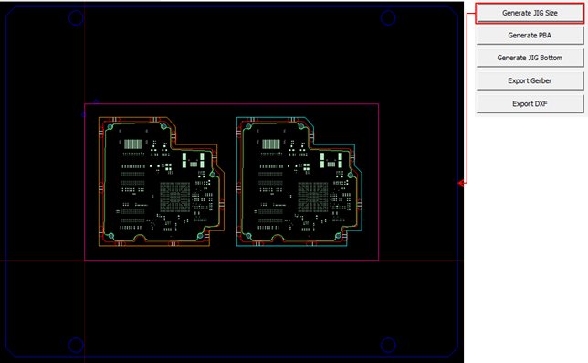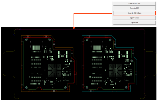 At this stage, the router JIG is used to fix the panel PCB and suck the dust generated during the router process. Router-Machine JIG Generator provides to quickly generate design drawing for manufacturing JIG using PCB design data and panel PCB Gerber of array board.