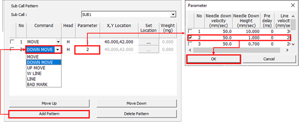 (40.0,59.5) and applies 3mg of the underfill solution. The moving speed
