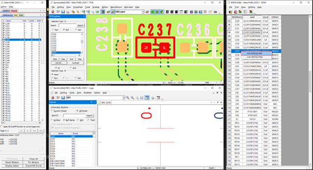 The selected part displays on PCB, Logic, and BOM.Figure 15.