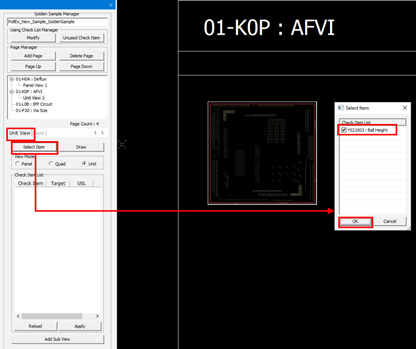 Figure 9. The spec table of the check item is displayed at the top of the