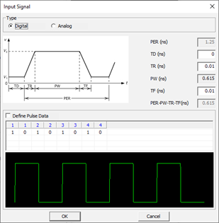 characteristics and the values defined at Input Signal and Pulse Period. When