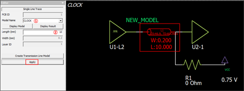 The selected trace model denotes that it is routed at 1 layer with 0.1 (mm)