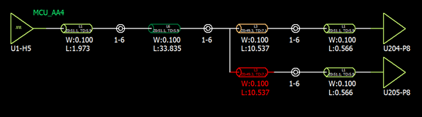 Move the mouse cursor over 1st net trace connected to the driver, press the