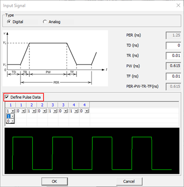 From the menu bar, click Analysis > Network Analysis, change the Pulse Period from 2 (ns) to 1.0 (ns) and