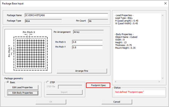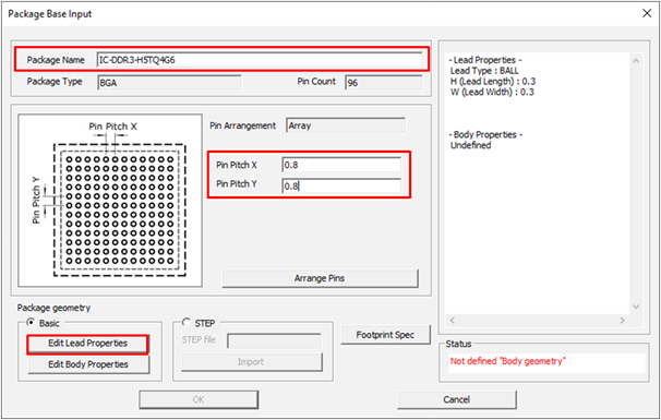 - For Package Type, select BGA.