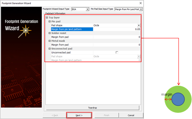 Generate a footprint using footprint generation wizard.