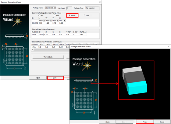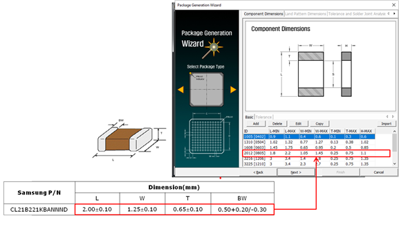 - Set Package Type to Chip Capacitor.