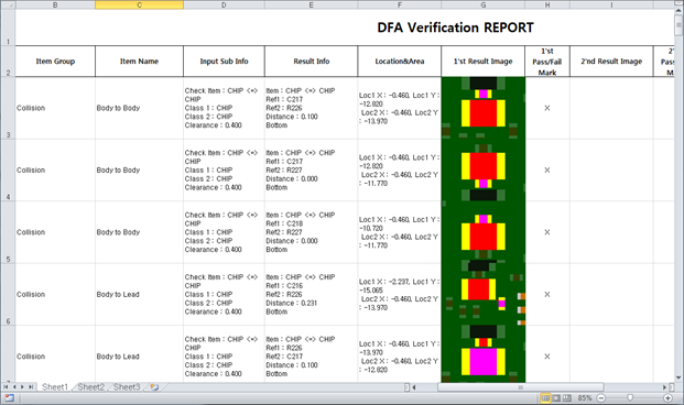 PollEx DFA is an assembly status checking tool set for PCB design based on 3D package library. PollEx DFA is a software option of PollEx PCB. Based on PollEx PCB design and imported matching 3D package shape, PollEx DFA provides full board 3D model and assembly checking, which is impossible with 2D data. For the detected violations, PollEx DFA sorts them according to their types. This helps manufacturing engineers to reduce cost and time.