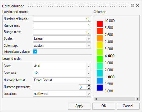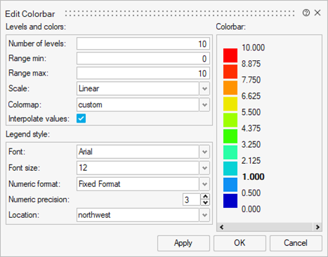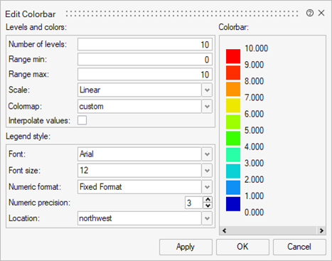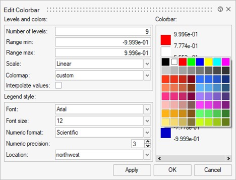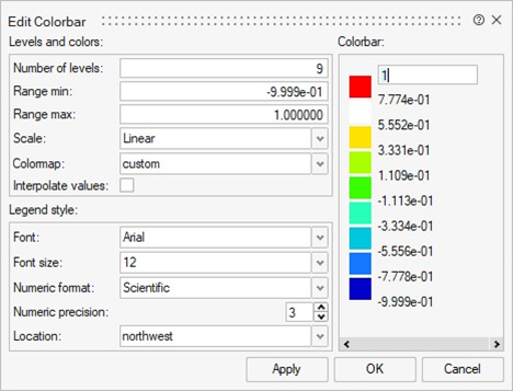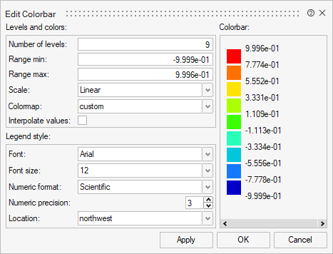 | Interpolate values | If selected, the colorbar values are interpolated when edited. |
