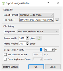 C:\EDEM_Tutorials\Screw_Auger_video.wmv - Select Windows Media Video V8 or any available