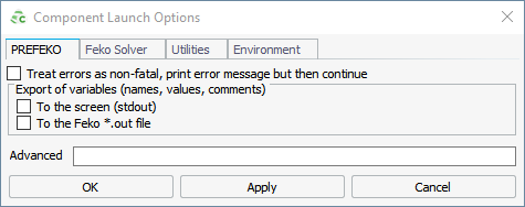 dialog launcher.Figure 1. The Component Launch Options dialog.