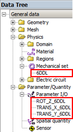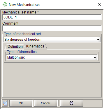 → By default the parameters associated to the "6 degrees of freedom" Mechanical Set are multiphysic parameters. These parameters can be directly used:- in a coupling with an other software like Activate.