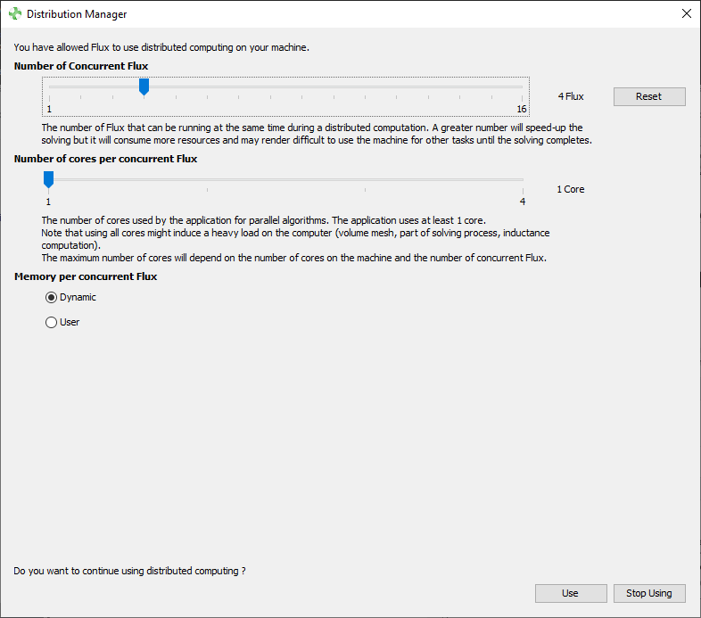 - setting of memory for each concurrent Flux in the windows of the distribution manager