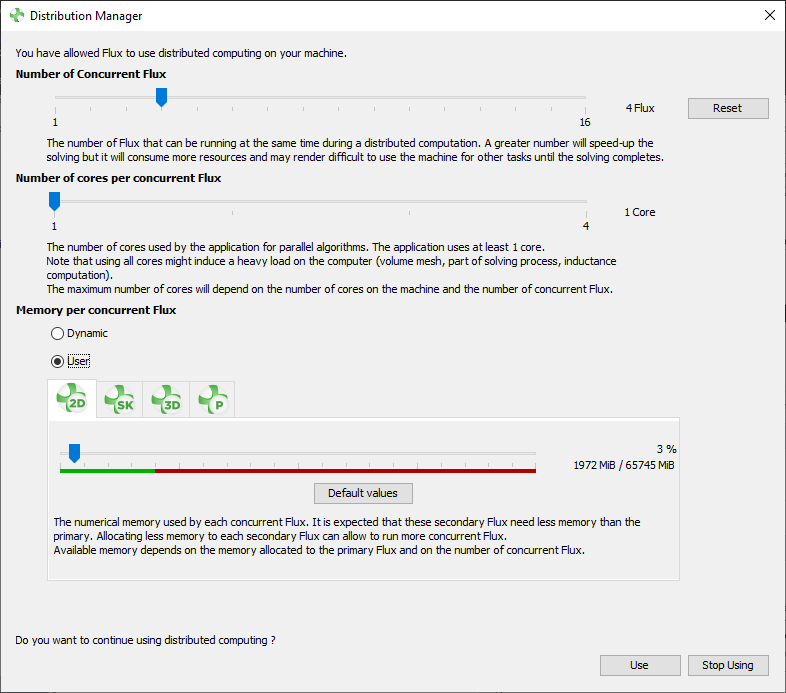 - Available memory depends on the memory allocated to the primary Flux and on the number of concurrent Flux