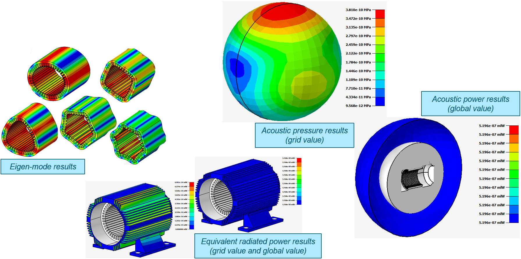 Once the PMSM is electromagnetically computed, the second step is to analyze its NVH characteristics. In Flux, the most common way is to export the electromagnetic forces acting on stator teeth from the transient magnetic analysis and run the NVH analysis with OptiStruct.