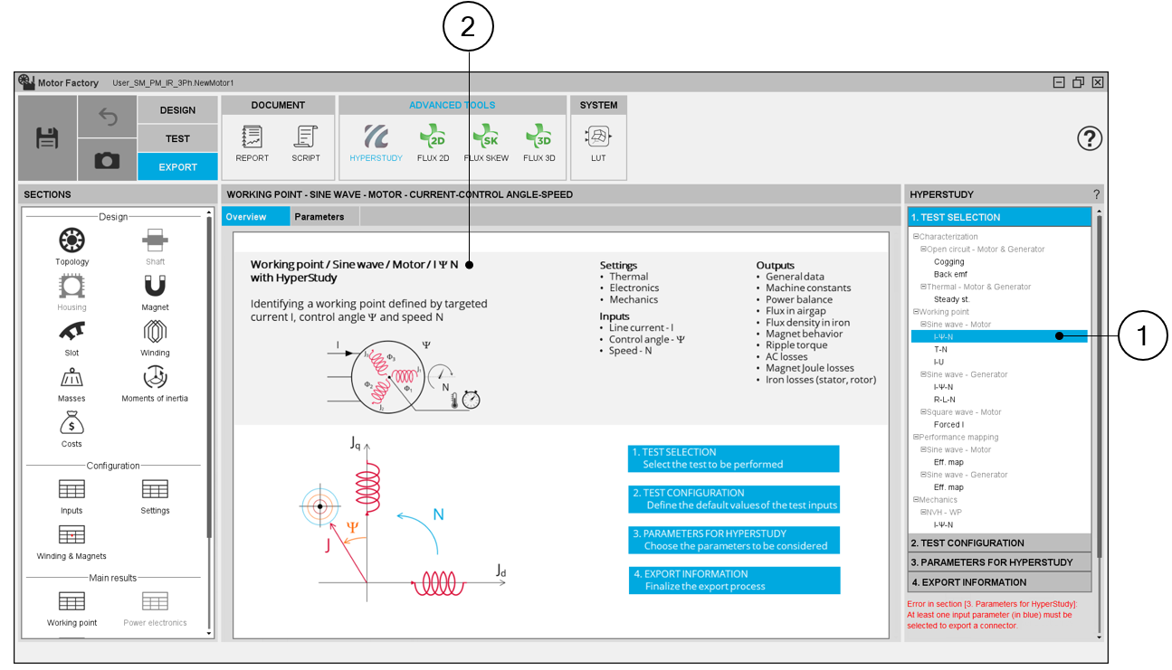 In the current version of Altair FluxMotor, 10 tests can be selected: