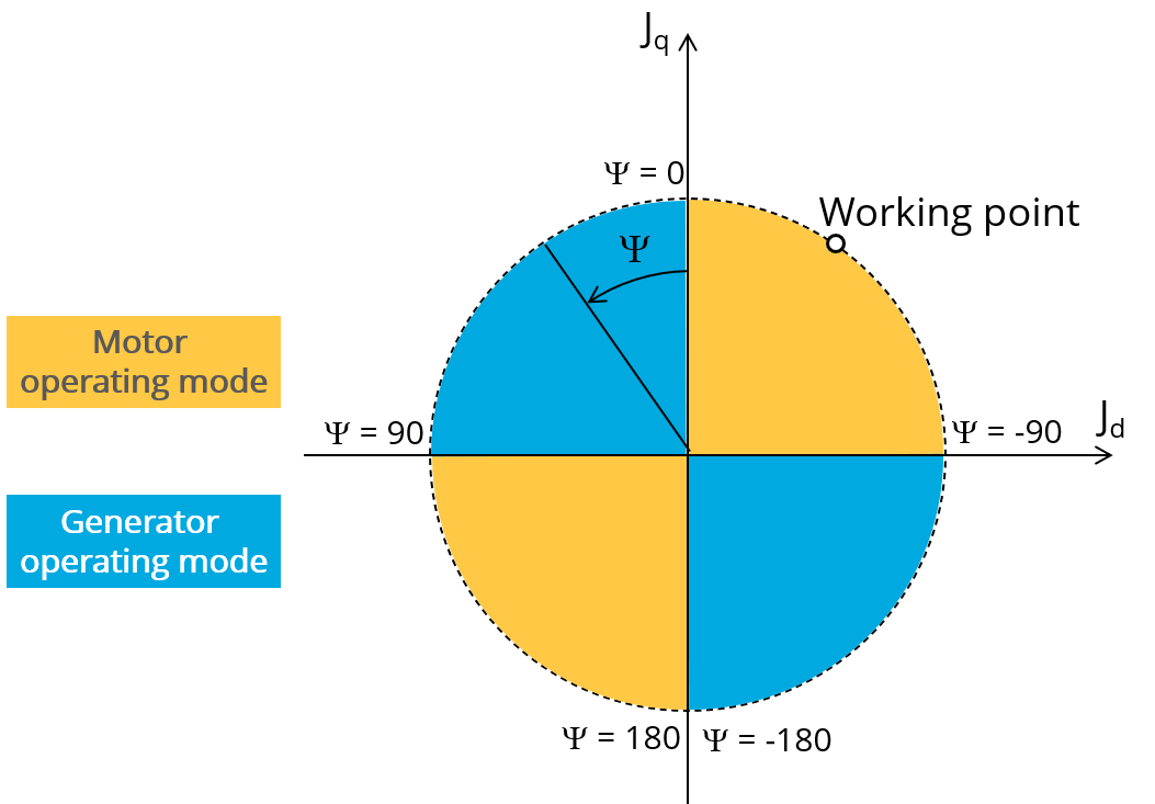 Considering the vector diagram shown below, the “ Control angle ” is the angle between the Q-axis and the electrical current (J) i.e. (Y = (J q , J)).