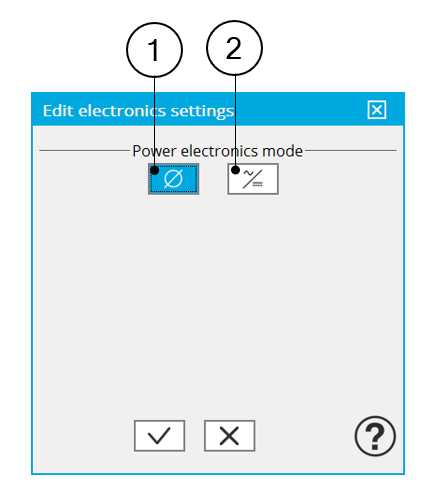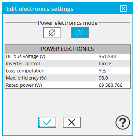 When available, the selection of the “Power electronics mode” gives access to a dedicated list of user input parameters.