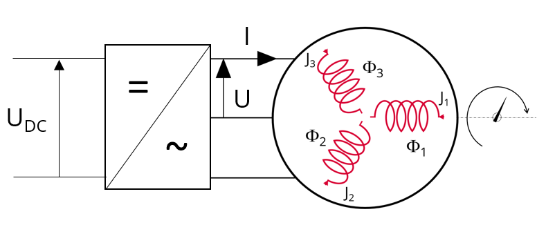 Voltage and current inputs of the power electronics stage and electrical machine |