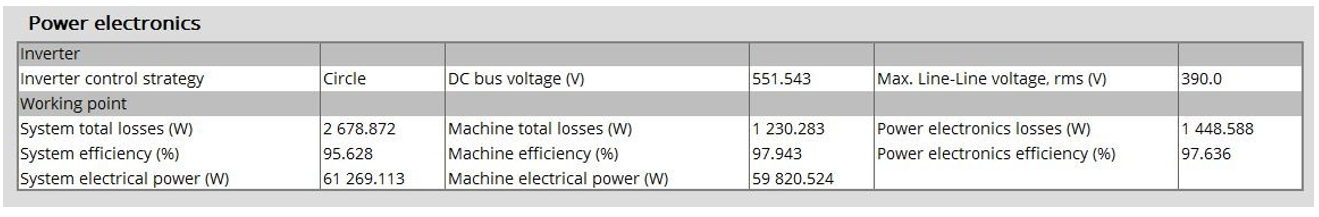 Power electronics mode with loss evaluation – Example of dedicated output table |