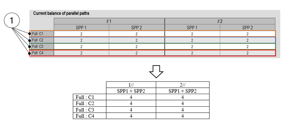 The three kinds of possible configurations in term of electrical current in parallel paths are illustrated below: Strong balance, weak balance and unbalance