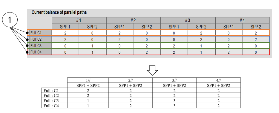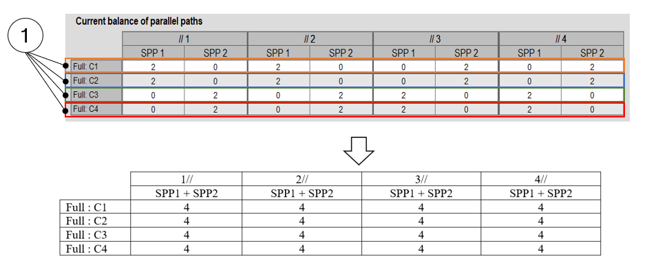 When the hairpin configuration is balanced (strong and weak balance), all the slot stars are superimposed (to differentiate strong and weak balance case referred to the table Parallel paths)