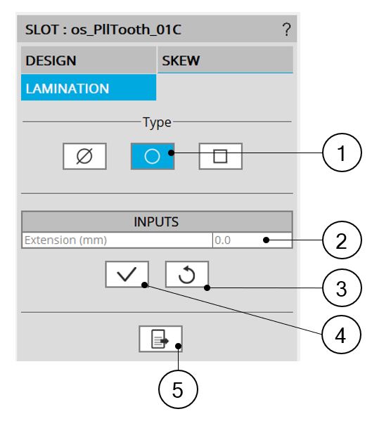 In that case outer shape of lamination is circular without extensions. Outer dimensions of lamination are indicated in general data (structural data part). See illustration below.