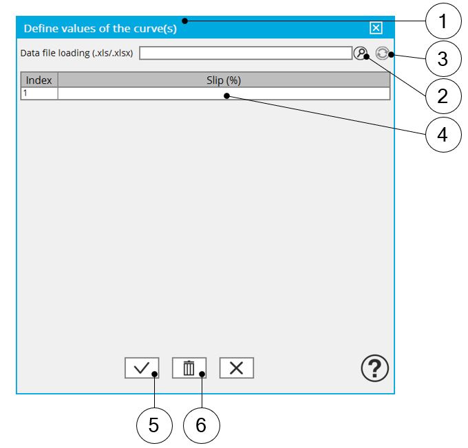 1 Dialog box opened when clicking on the button “Set values” in the field “Slip table”