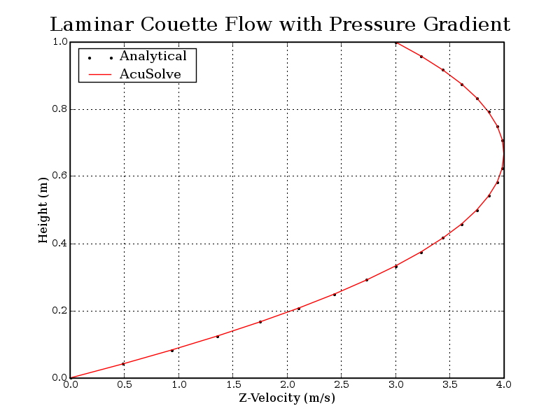 results with analytical results validates the ability of AcuSolve to model cases with imposed pressure gradients.