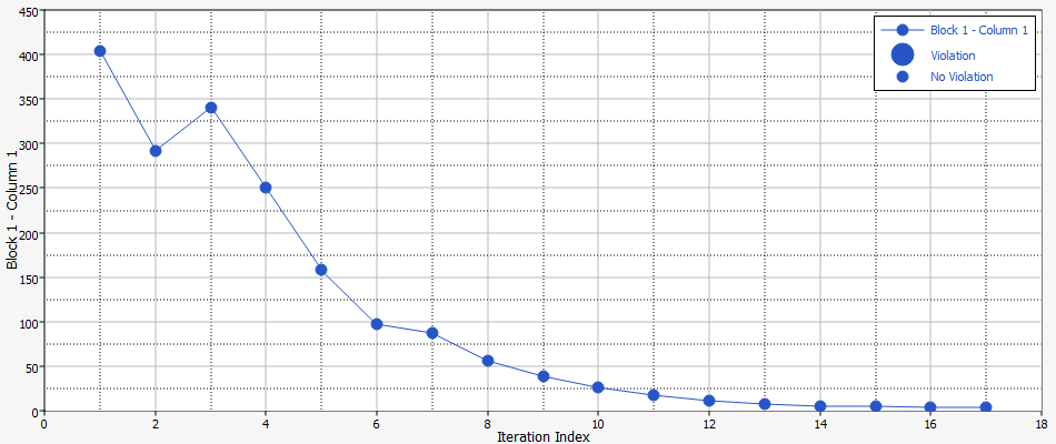 The example defines two input variables labeled x and y, respectively. The objective of the optimization is to minimize f(x,y)= 100*(y-x^2)^2 + (1-x)^2. The range for x and y is set to [-2 ; -2] , and the start point is [-1 ; -1].