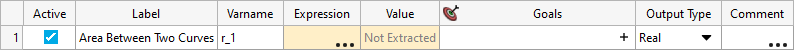 Define the Area Between Two Curves output response.