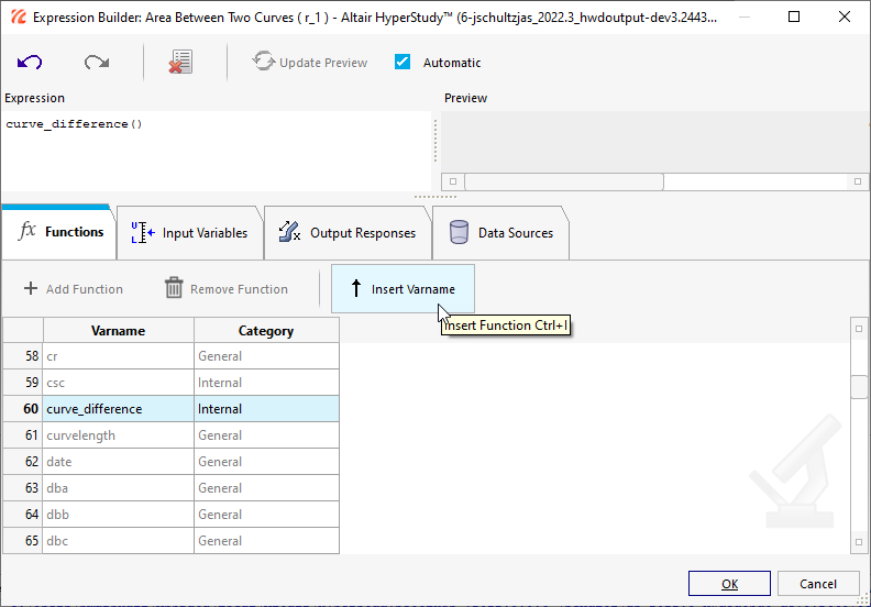- In the HyperStudy - Set Preference File dialog, open the curve_difference.mvw file.