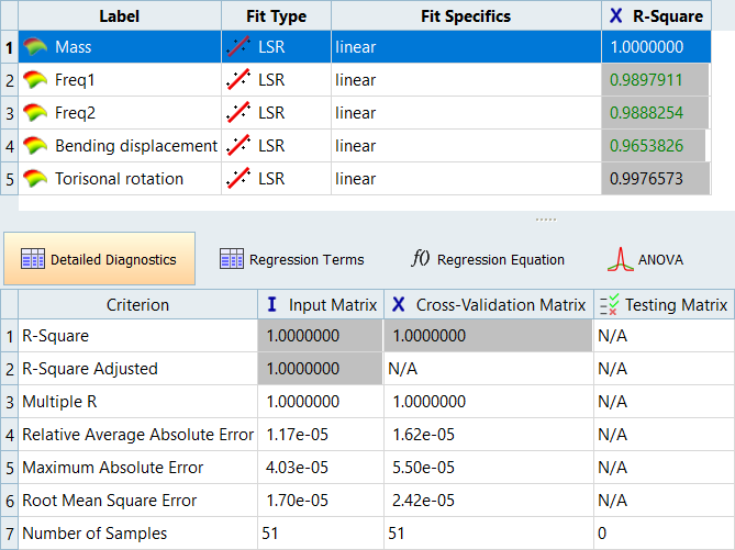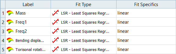 - In the work area, Fit Type column, select Least Squares Regression for all output responses.