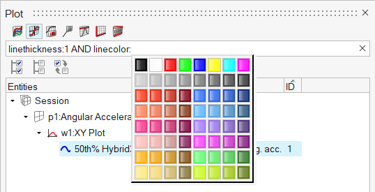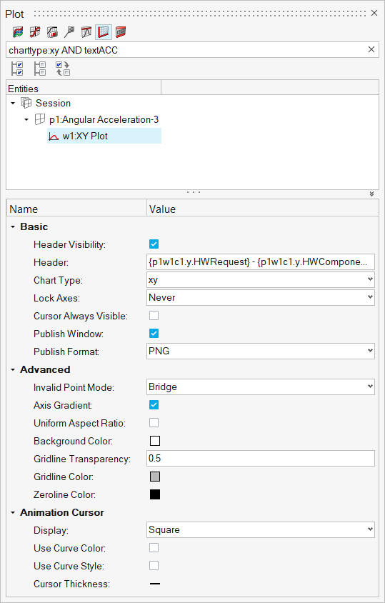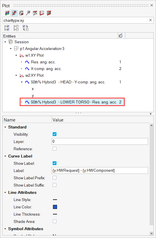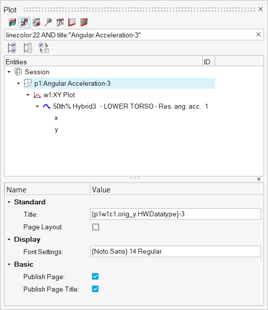 The example below illustrates searching for all axes with Acceleration in the label on an xy plot.
