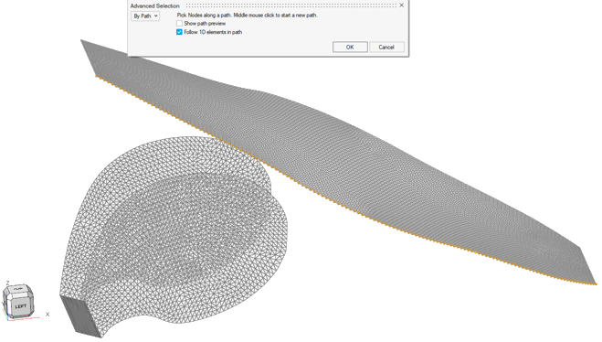 - Select the boundary nodes that will move to be merged with boundary nodes of another part.