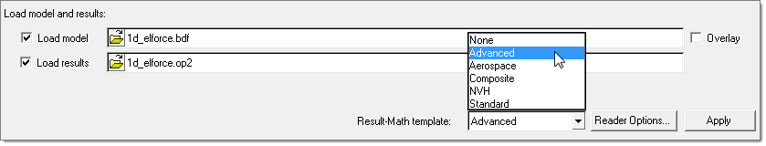 To use this functionality, load the model and results files with the Advanced Result-Math