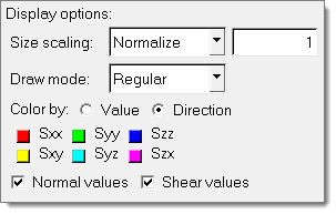 - Size scaling and color by options are rather straightforward. For clear results normalize the tensor to a value of 1.0 or less. This will ensure that the tensor drawings will not breech the elements’ edge.