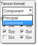 - The Tensor format should be set to Component. This allows any or all of the full tensor components to be plotted. The Principal Tensor format is used for plotting stress tensors.
